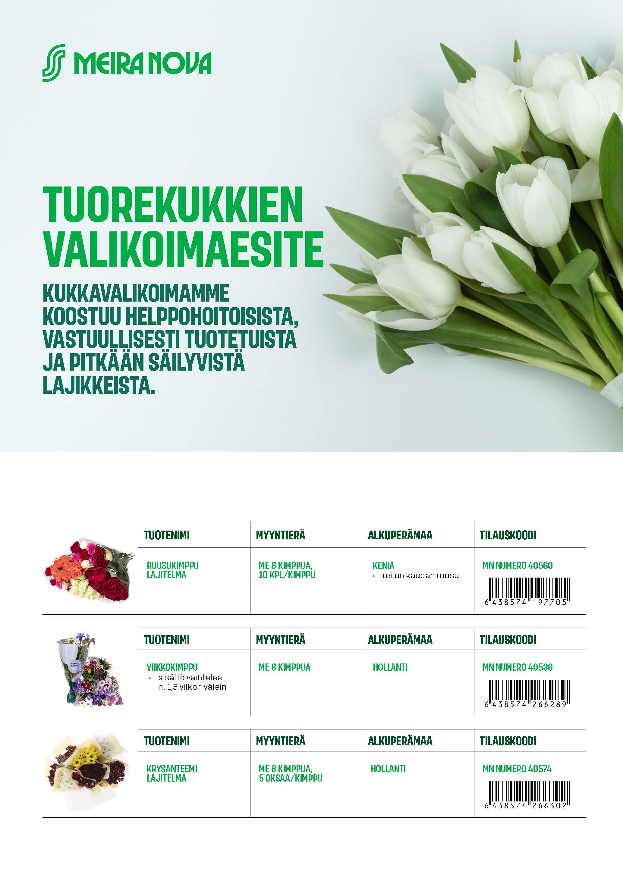 Meira Nova tuorekukkien valikoima