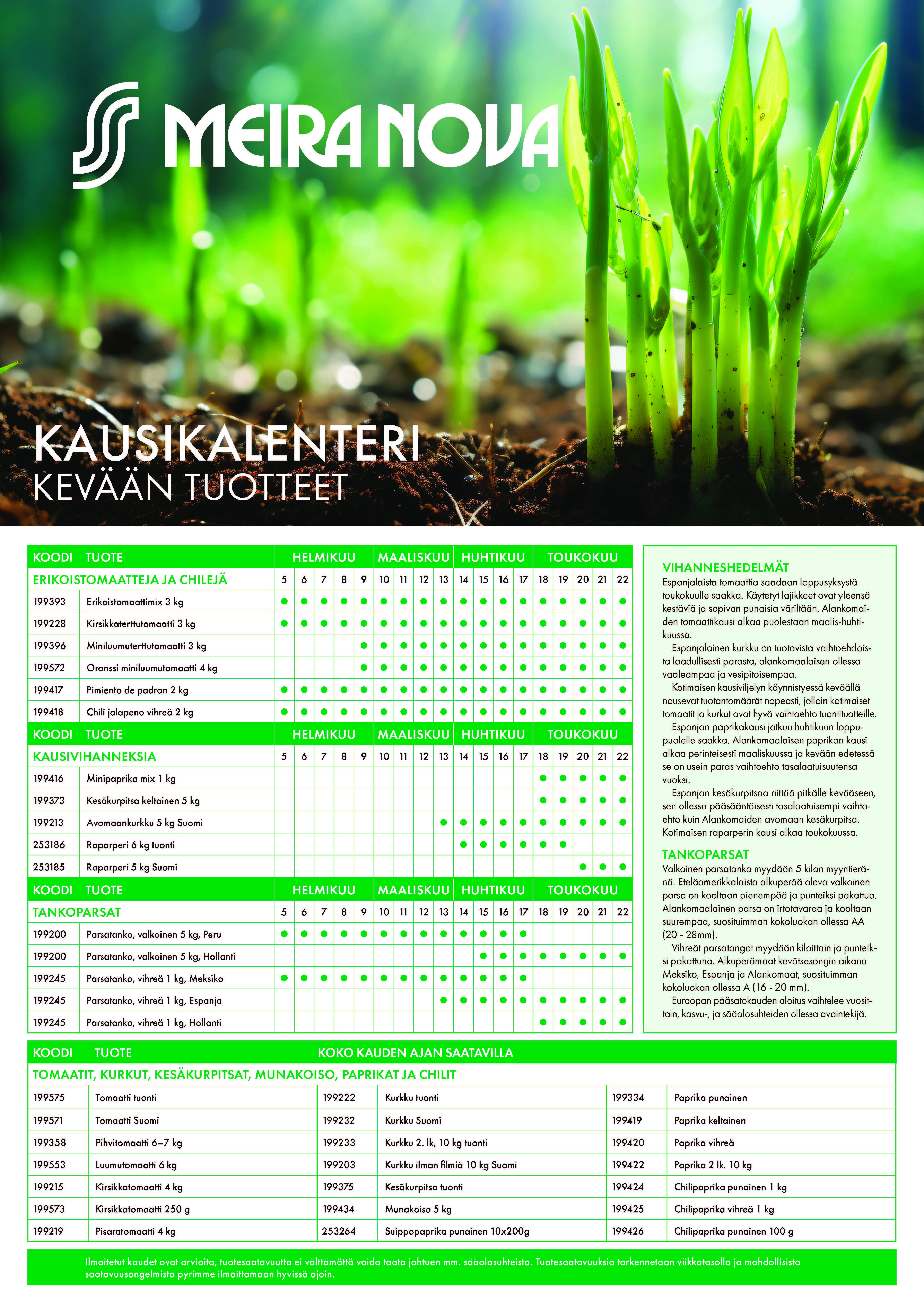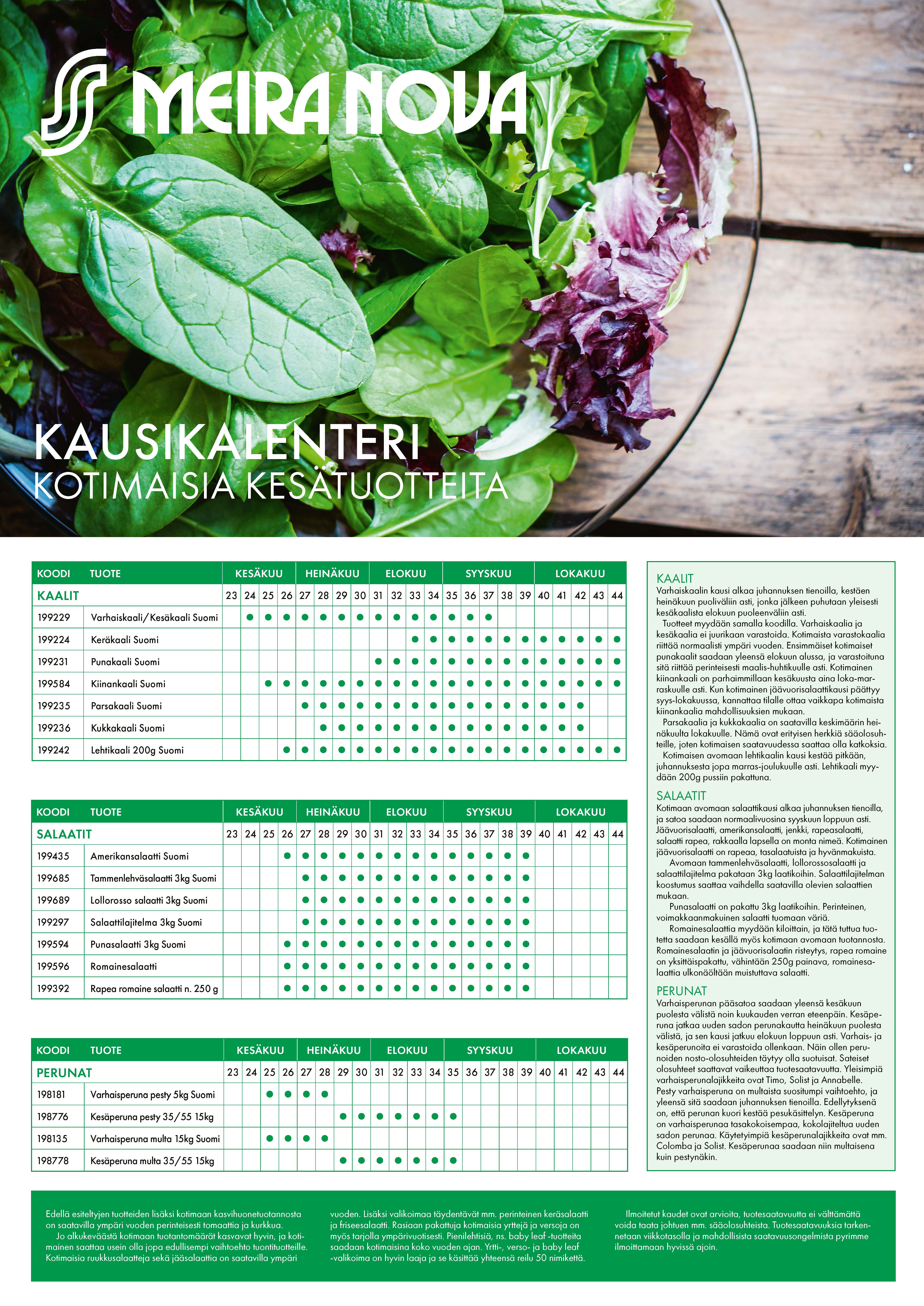 Kotimaisten kesätuotteiden kausikalenteri
