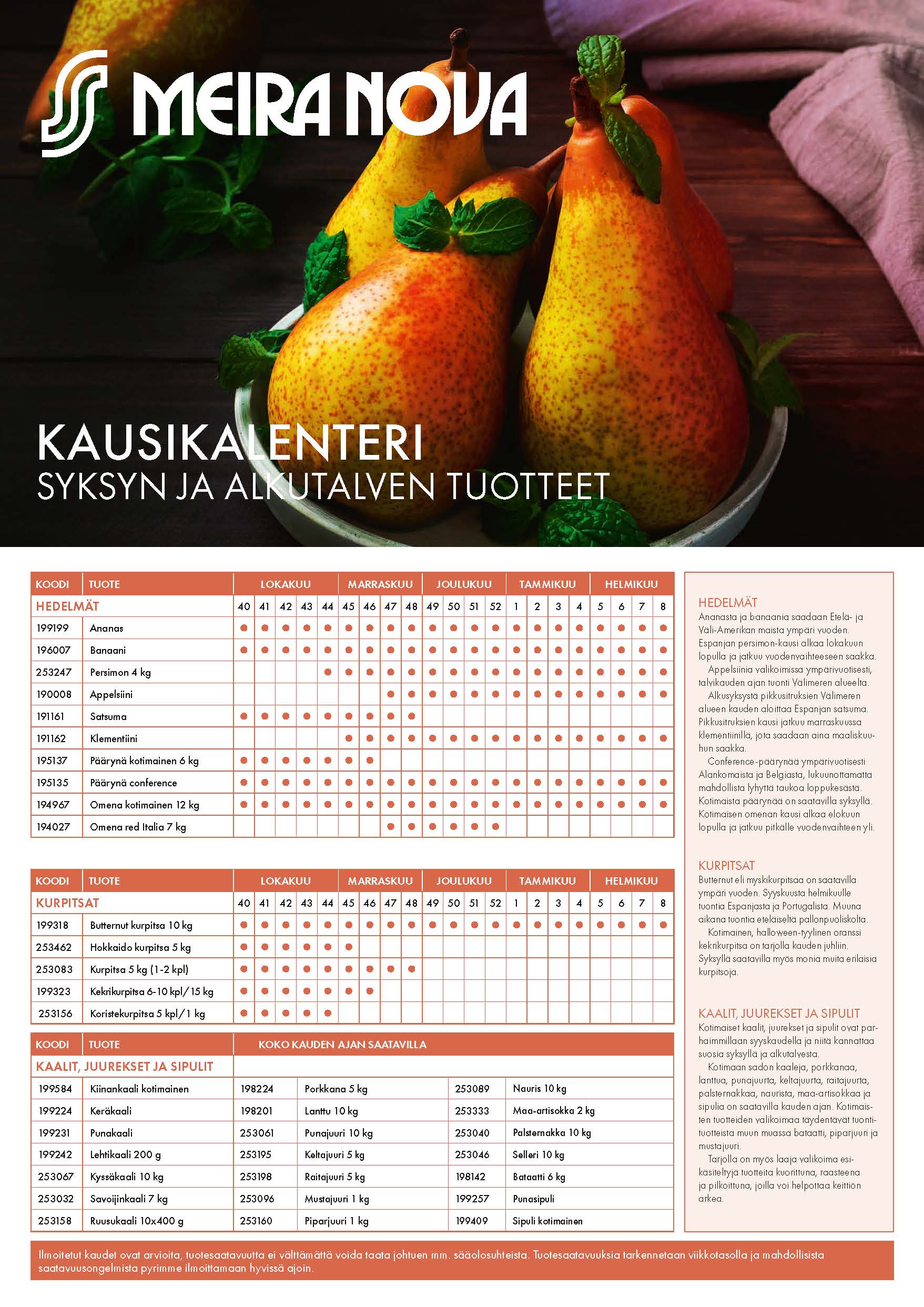 Syksyn ja alkutalven kausikalenteri