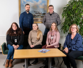 Kuvassa vasemmalta: tarvesuunnittelija Päivi Kurkaa, tarveanalyytikko Heikki Jäämies, tarvesuunnittelija Kristiina Korvenoja, tarvesuunnittelija Bjarne Kellgren, tarvesuunnitteluvastaava Virpi Nyström ja tarvesuunnittelija Jaana Kauranen. Kuvasta puuttuu vanheimpainvapaalla oleva Tiina Mickelsson.