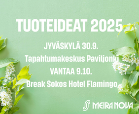 Tuoteideat ovat Meira Novan vuoden suurimmat asiakastapahtumat. Jyväskylässä ja Vantaalla järjestettävissä tapahtumissa asiakkaamme pääsevät kattavasti tutustumaan yhteistyökumppaneidemme tuoteuutuuksiin, vaihtamaan kuulumisia kollegojen ja meiranovalaisten kanssa sekä nauttimaan tunnelmasta.
