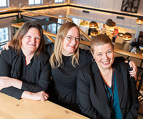 Kuvassa vasemmalta asiakkuuspäällikkö Sari Salminen Compass Group Suomesta, markkinointi- ja viestintäjohtaja Elina Hankkio Eventum Lahdesta sekä ravintolatoimenpäällikkö Leena Koskinen Compass Group Suomesta.
